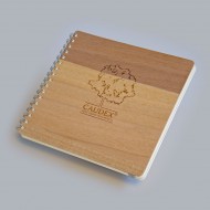All’interno trovi la storia del legno recuperato e 60 fogli in carta sistina formato 15×15, 80gr/mq a disposizione per i tuoi disegni, appunt, idee. La copertina è noce lavorata con il laser, la rilegatura è fatta con una spirale metallica con fori rotondi; chiusura su retro con elastico cucito all’interno.